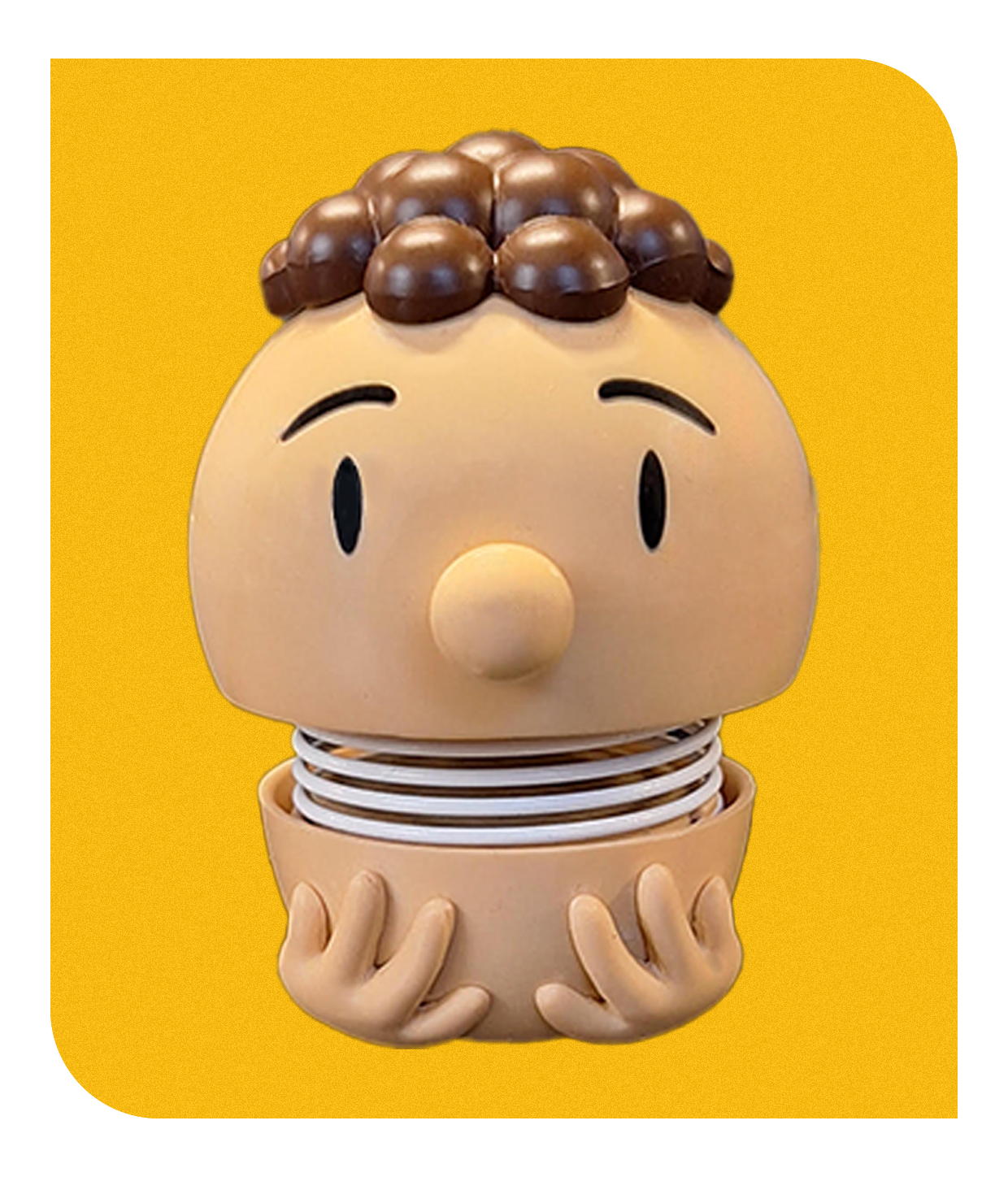 Min morfar havde mange Hoptimister, og jeg elskede at lege med dem. Min yndlings var en gigantisk frø. Hoptimisten kom frem i slutningen af 60’erne på et tidspunkt, hvor der var meget uro i verden, og dens absolut eneste funktion var at give folk et smil på læben i en svær tid. Så da plakaten til det nye show viste sig at blive så hoptimist-venlig i udtrykket, skrev jeg til Hoptimist Danmark for at få produceret min helt egen.