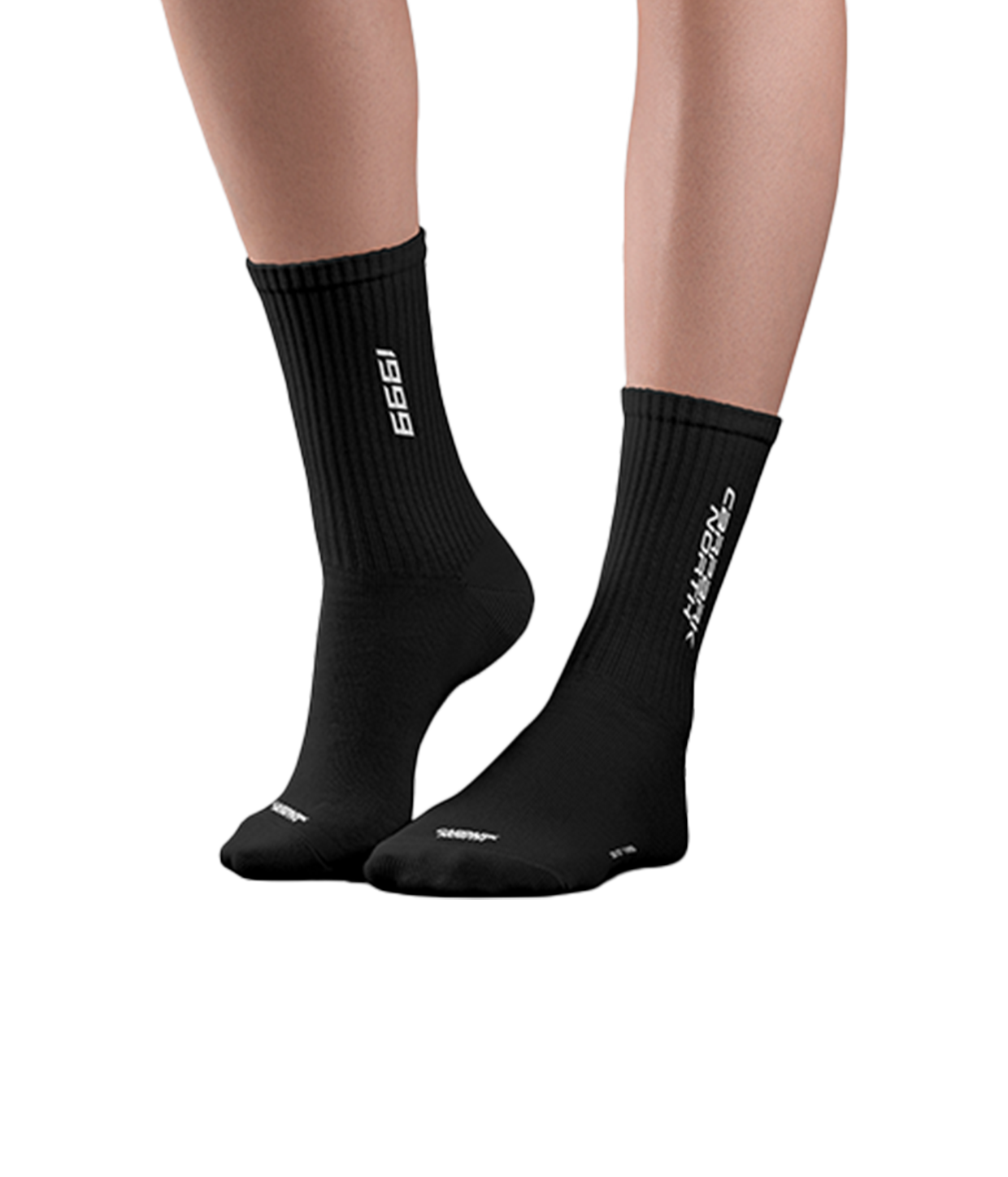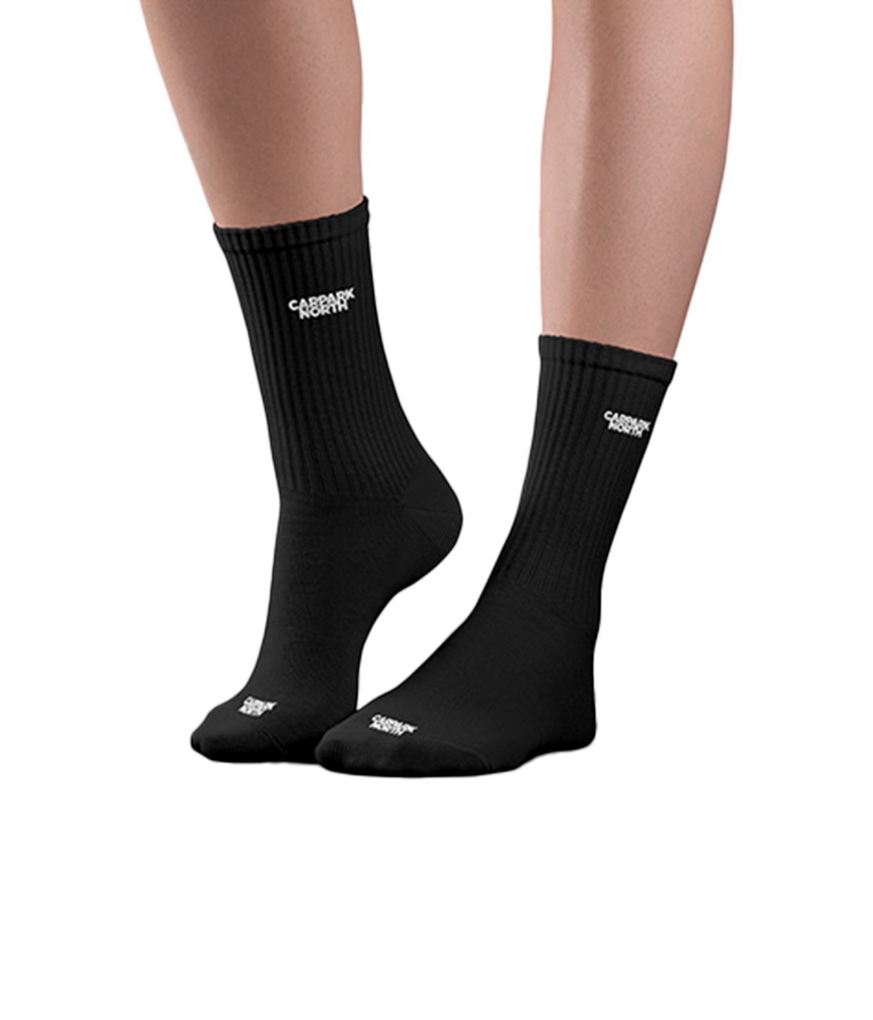 Hvide og sorte sokker med Carpark North´s logo, og sorte sokker med Carpark North og 1999.